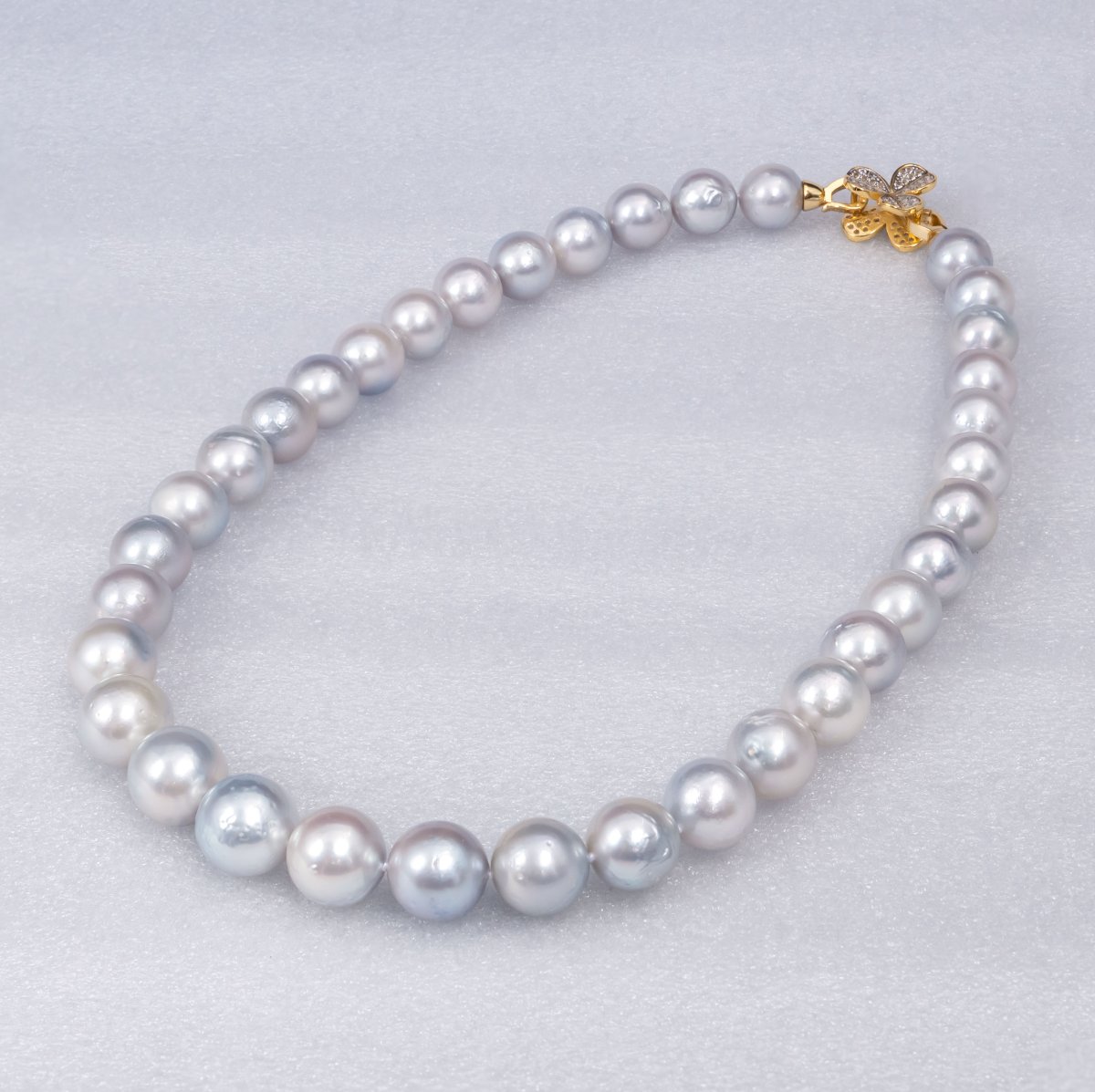 (GIA) 12.10 x 11.75 mm to 13.69 mm, White South Sea Pearl, Graduated Pearl Necklace