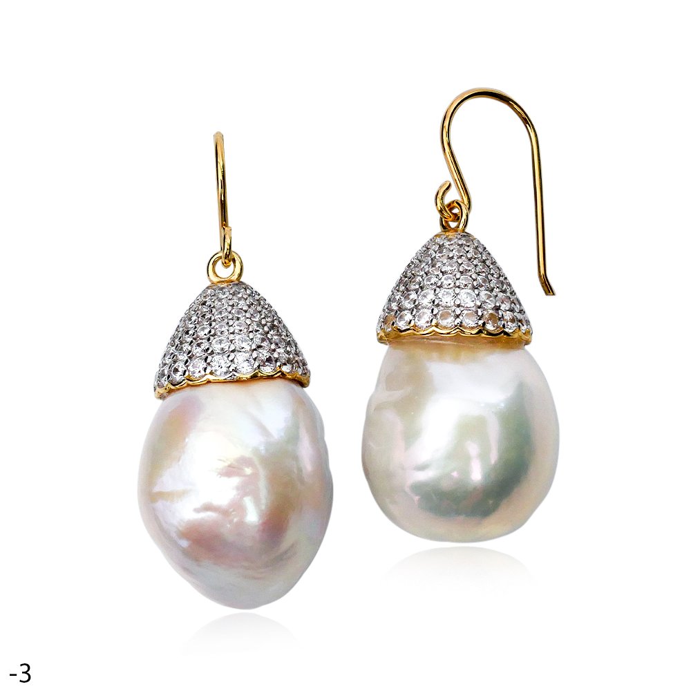Approx. 15.0-16.0 mm, Ripple Pearl, Fish Hooks with Giant Cup CZ Paved Pearl Earrings