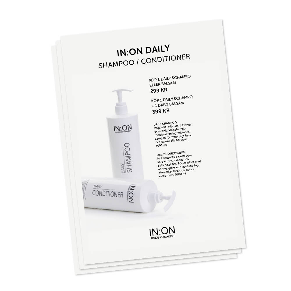 Kundskylt IN:ON Daily Shampoo och Conditioner, A4 och A5