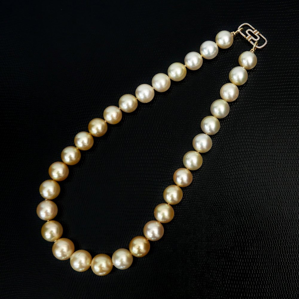 (PSL) Approx. 12.7 - 14.7 mm, Gold South Sea Pearl ,GraduatedPearl Necklace