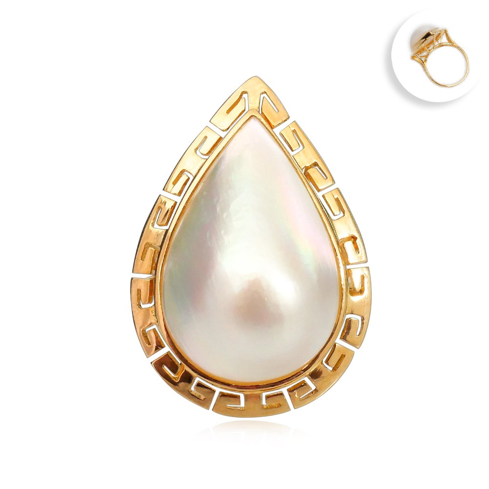 14.90 mm x 21.92 mm, Mabe South Sea Pearl, Solitaire Pearl Ring