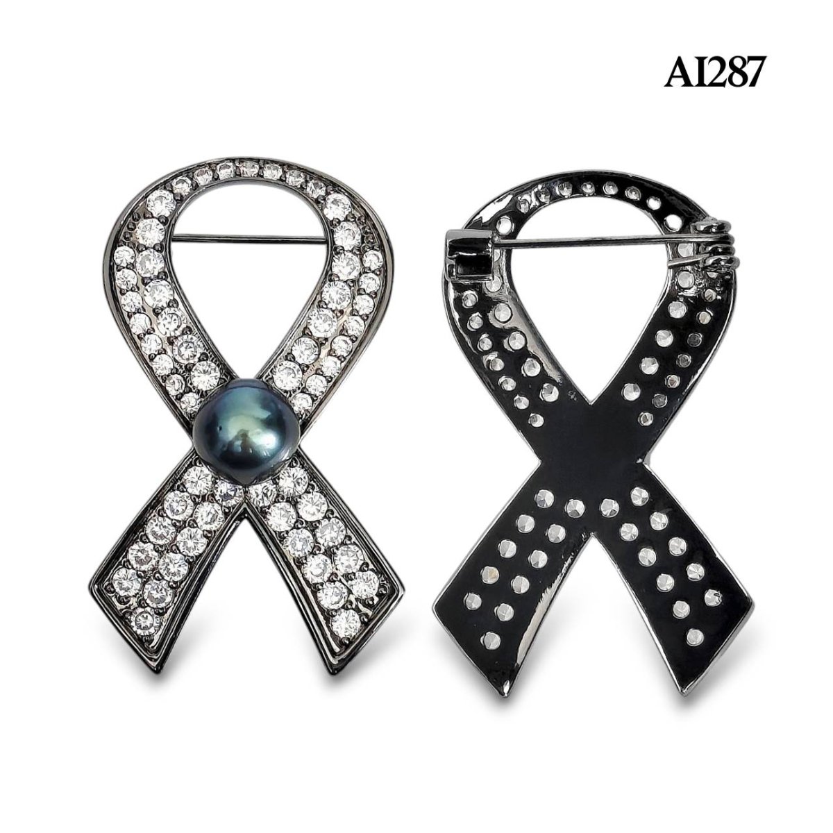 Approx. 8.0 - 10.0 mm, Tahitian Pearl, Ribbon Rip Pearl Alloy Brooch