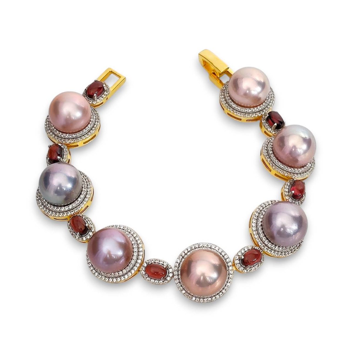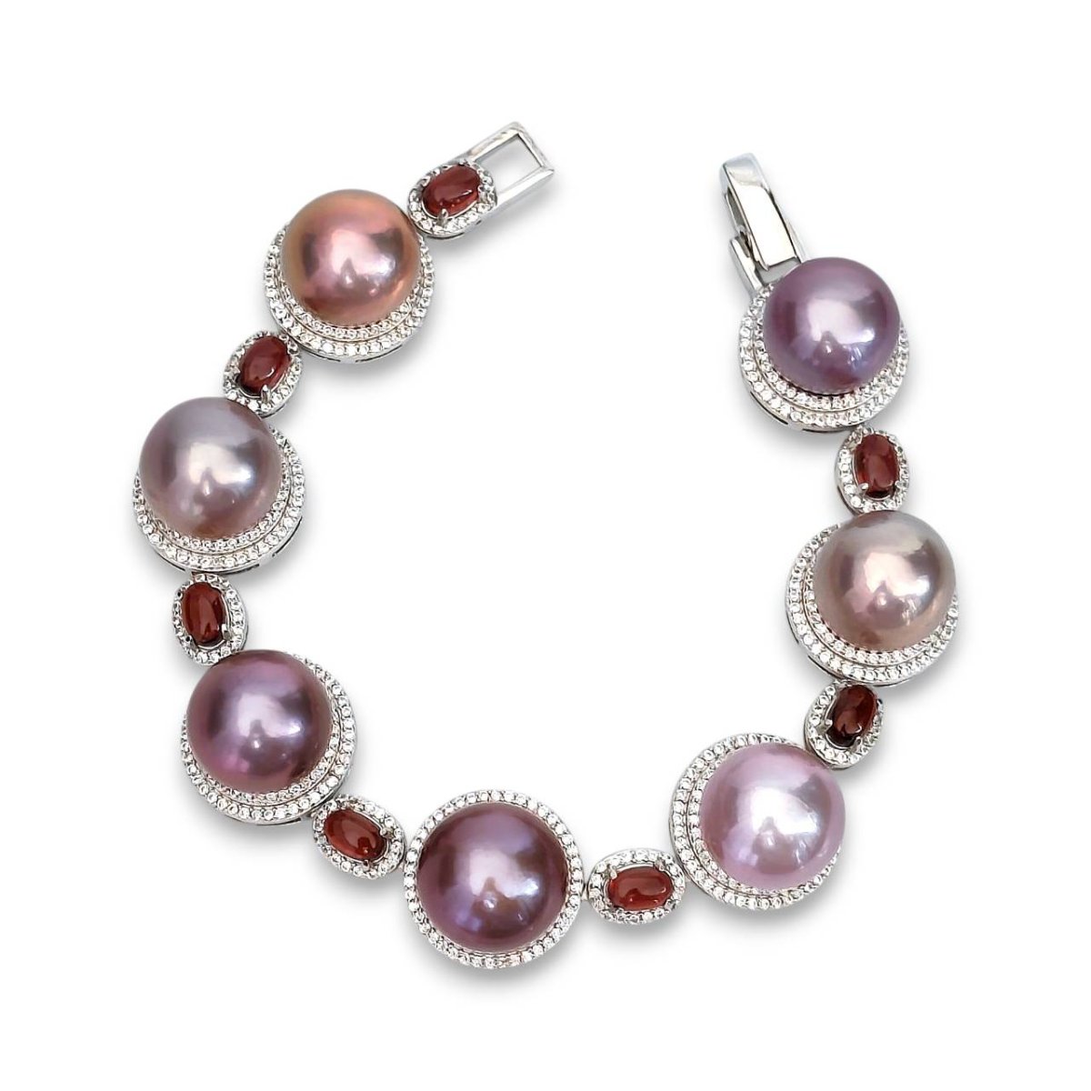 Approx. 13.0 mm, Edison Pearl, Pearl Halo Garnet Station Bracelet