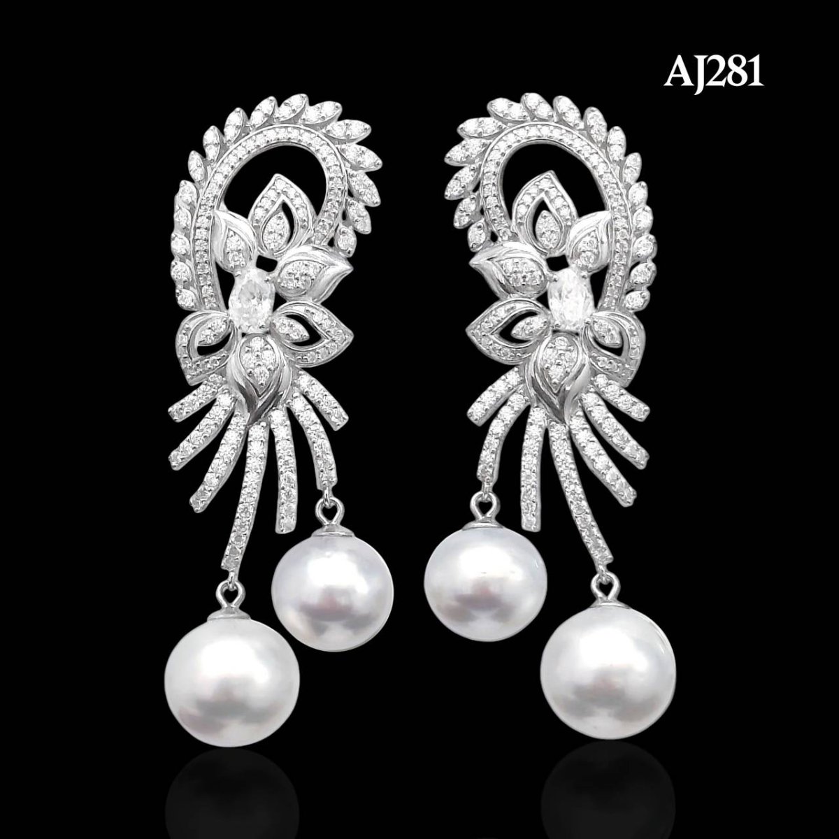 Approx. 12.0 - 13.0 mm, White South Sea Pearl, Garland Moissanite Paved Dangle Pearl Stud Earrings