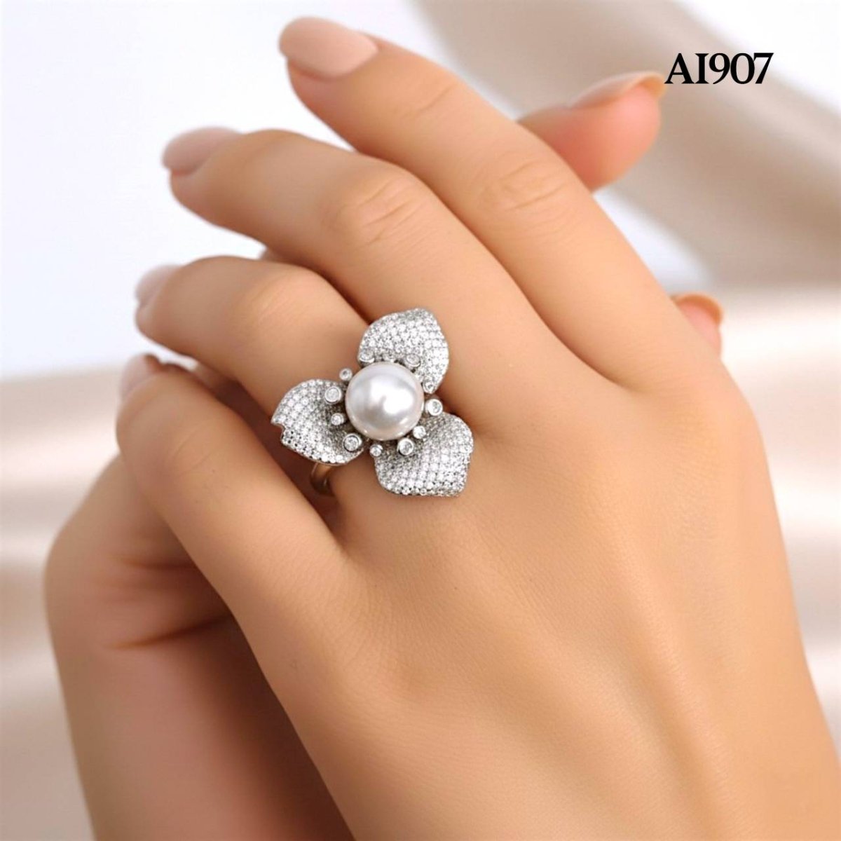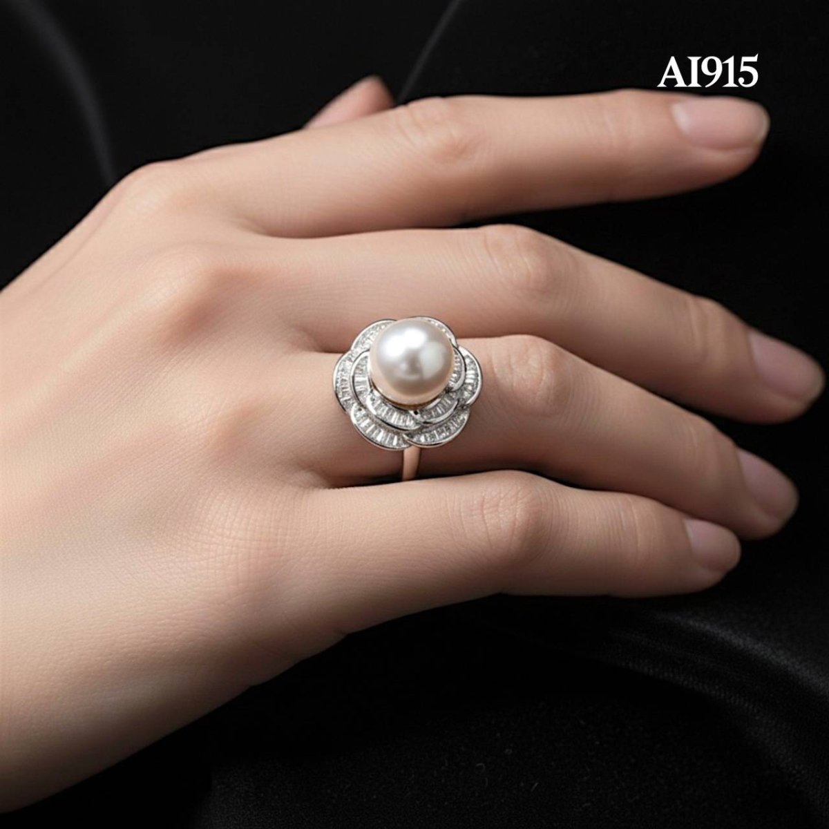 Approx. 9.0 mm, White South Sea Pearl, Solitaire Pearl Flower Ring