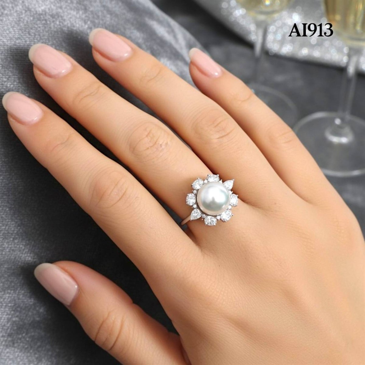 Approx. 9.0 mm, White South Sea Pearl, Solitaire Pearl Halo CZ Ring