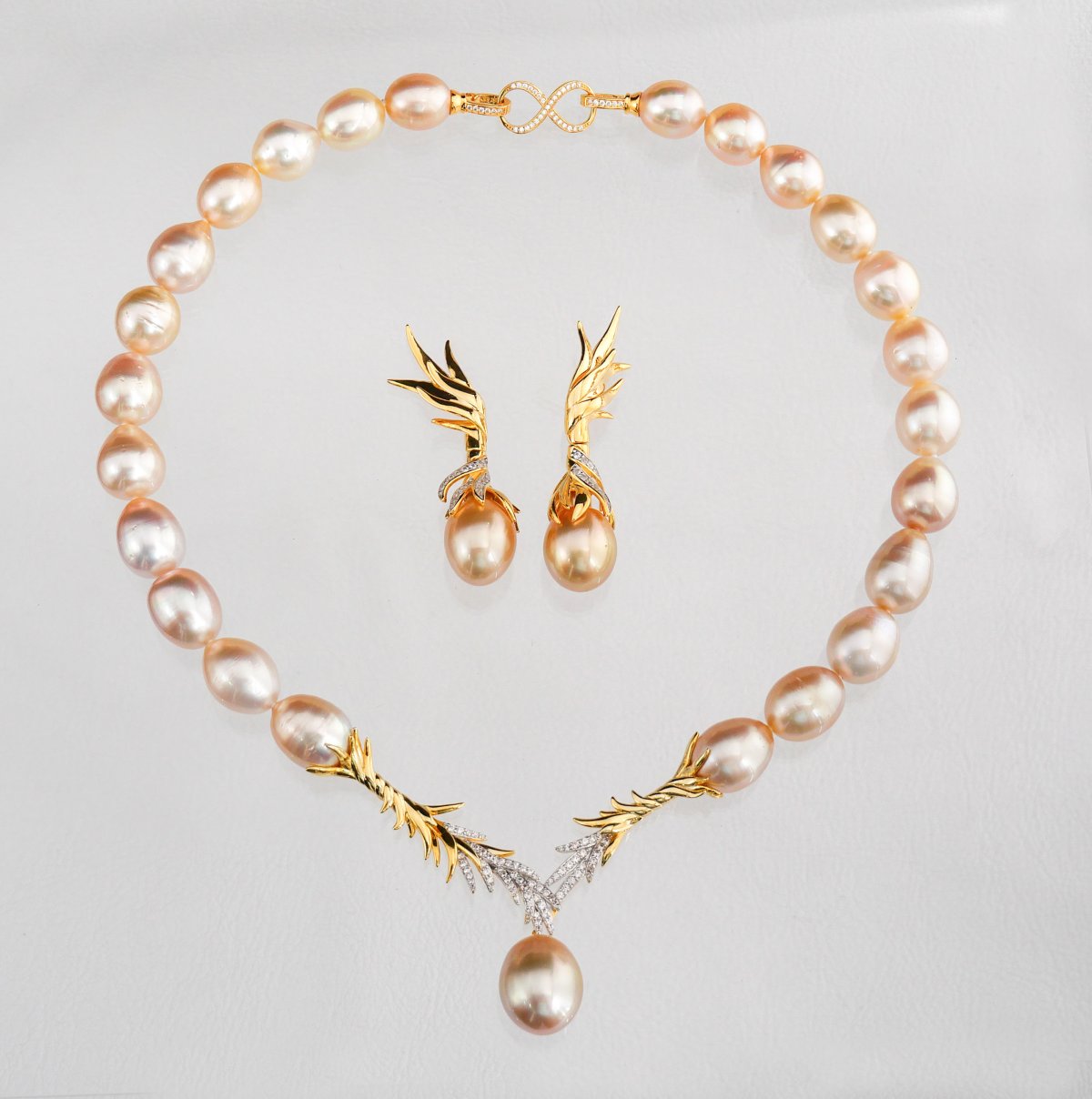 Approx. 11.0 - 14.0 mm, Gold South Sea Pearl, Passion Paradise (Wings of Phoenix) Demi Parure Pearl Set