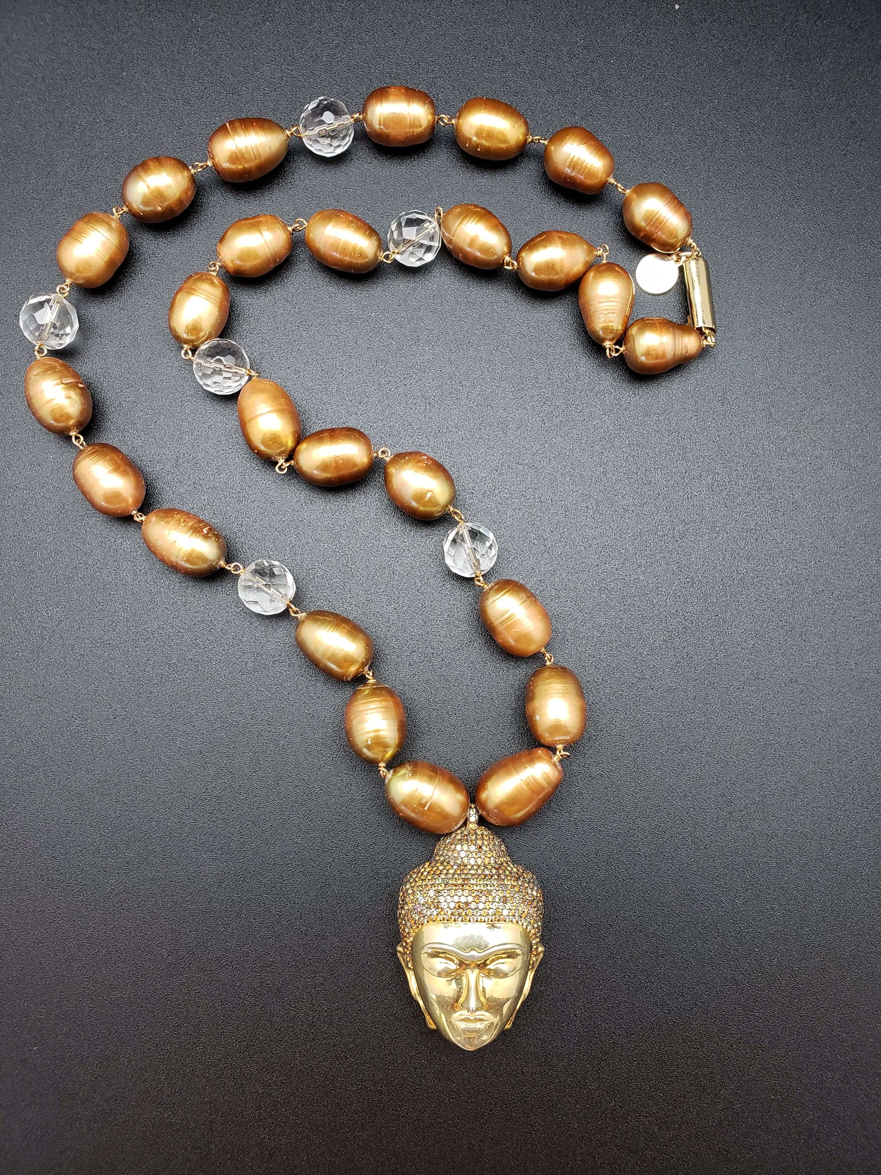 Pearl and Clear Quartz Necklace with Buddha Pendant