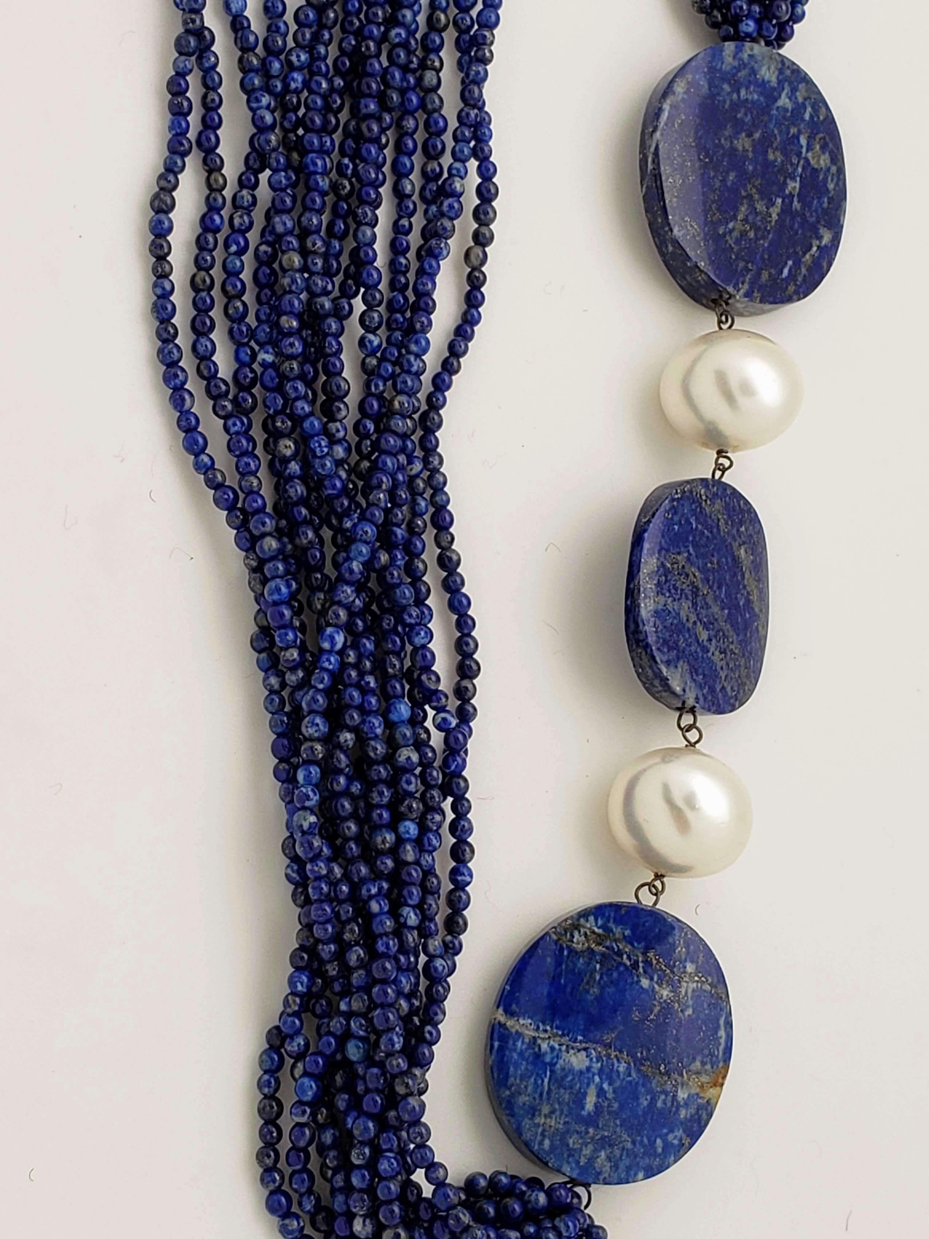 14-Strand Lapis Lazuli and Pearl Necklace