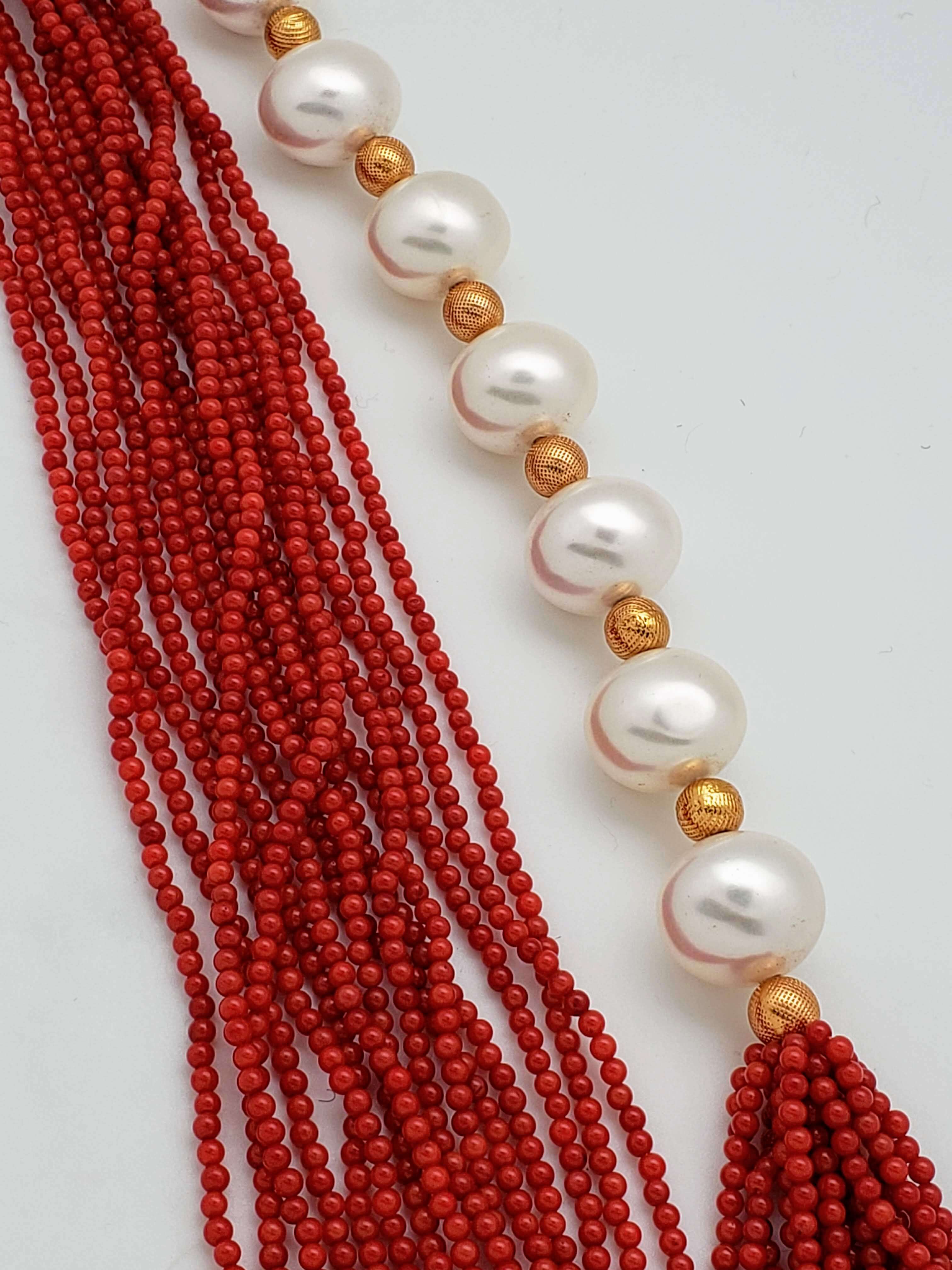 15 – Strand Red Coral, Pearl and 24K Gold Foil Bead Necklace