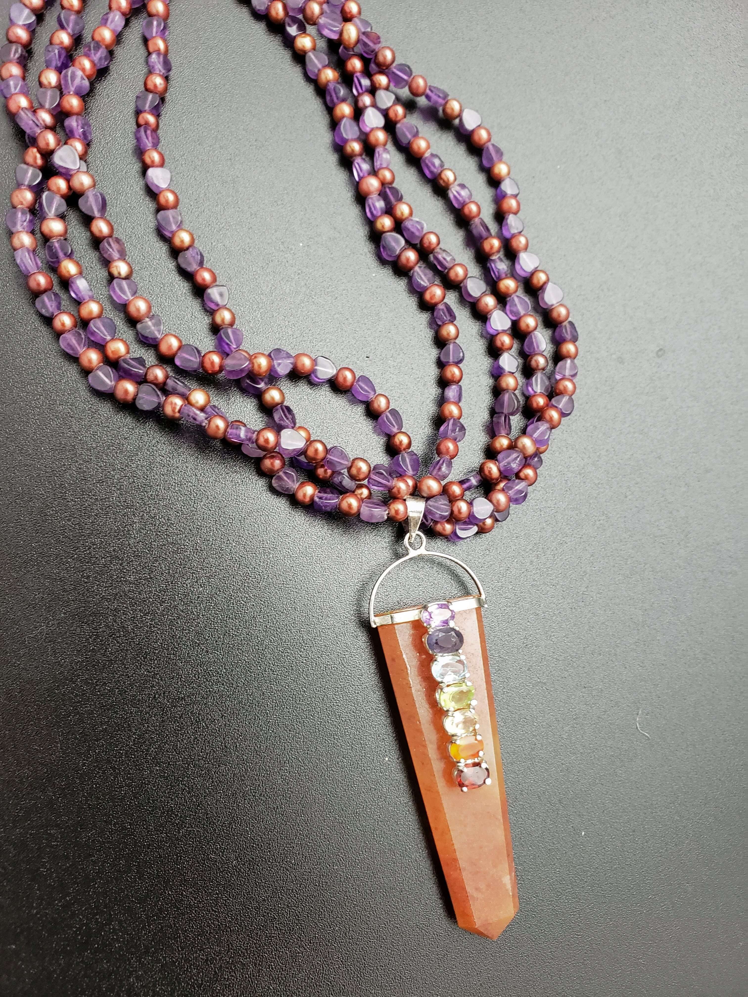 Amethyst and Pearls with Azeztulite Chakra Pendant