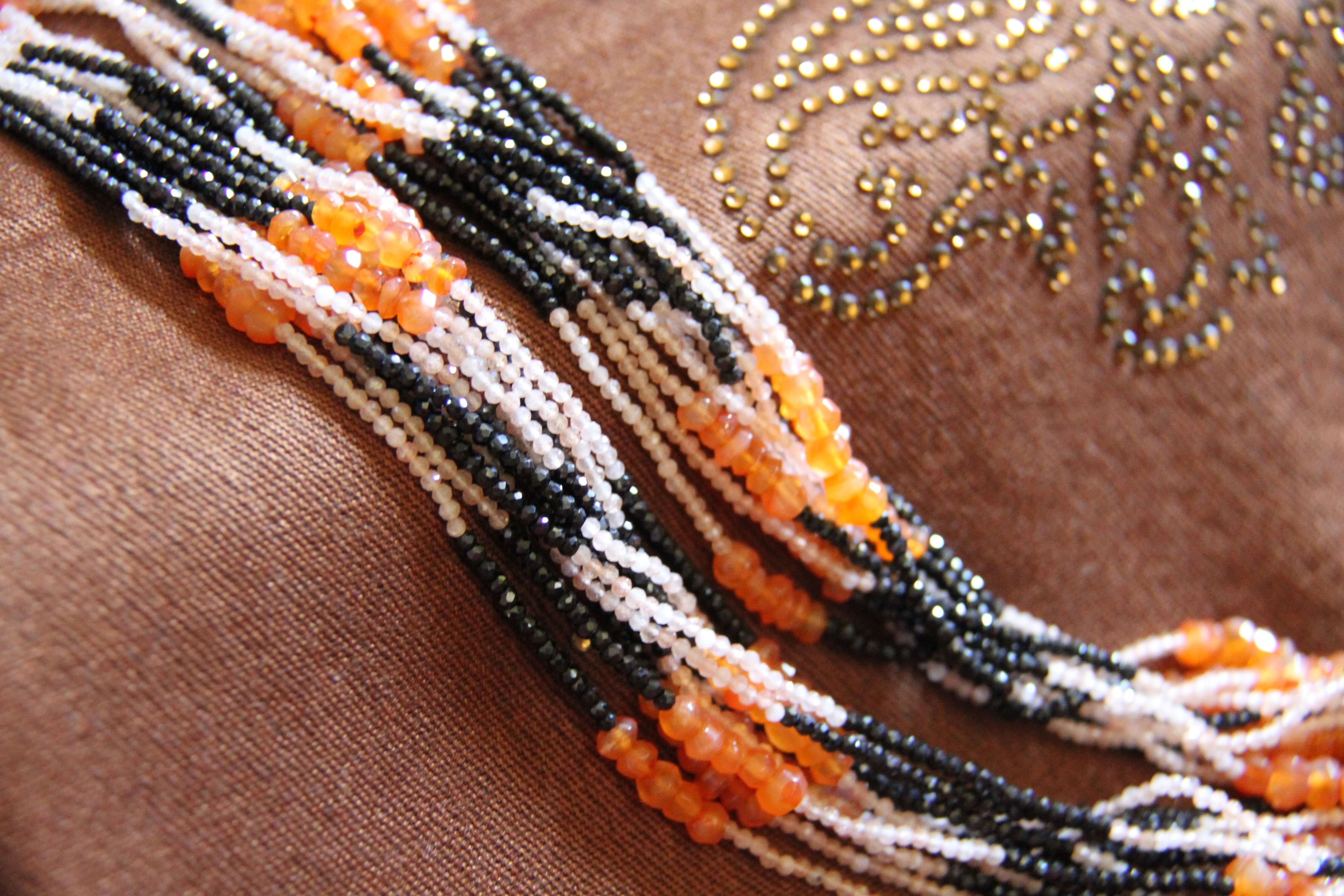 Black Spinel, Citrine and Carnelian 11-Strand Necklace