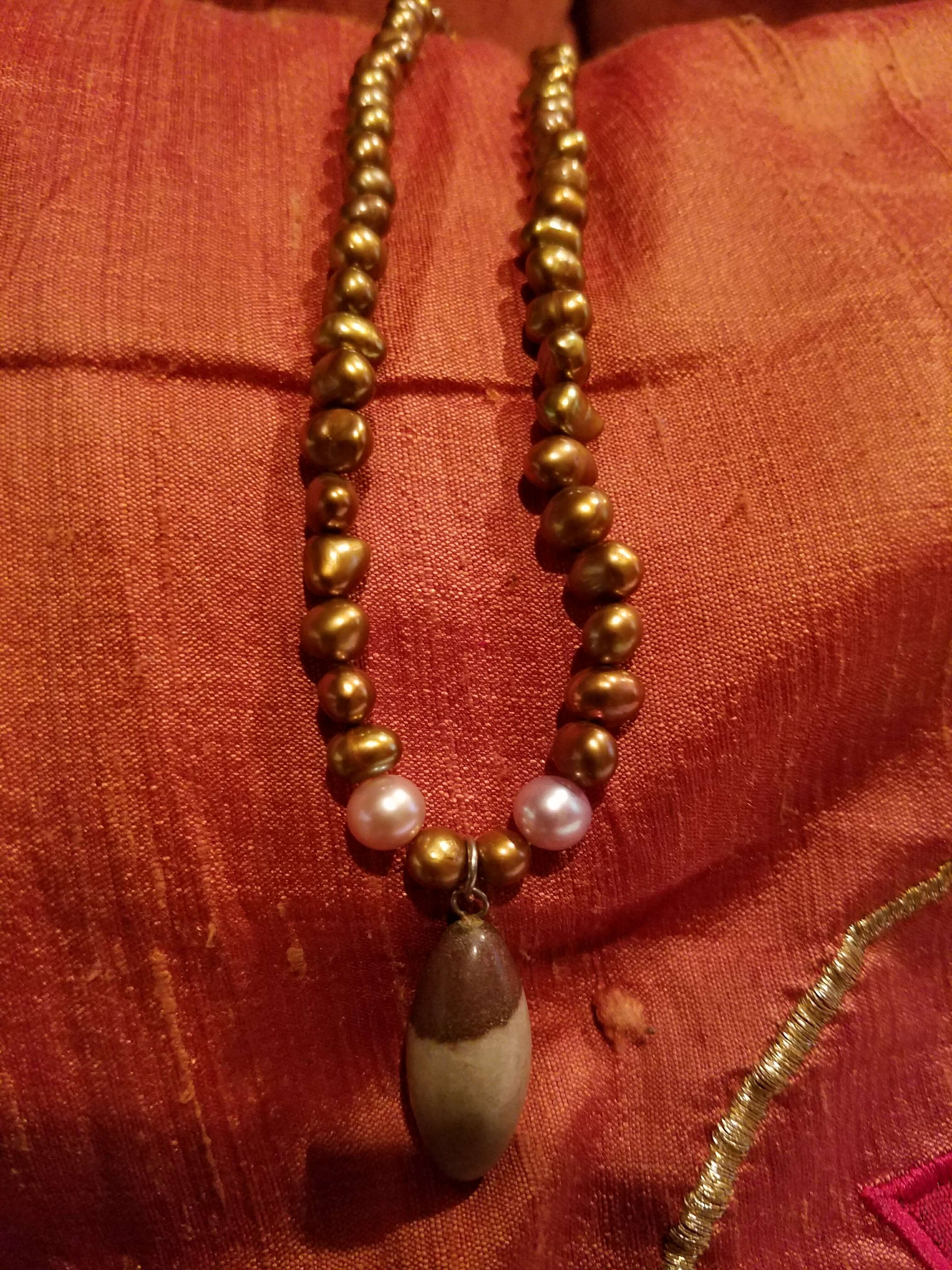 Freshwater Pearl and Sterling Silver Necklace, Rose Clasp